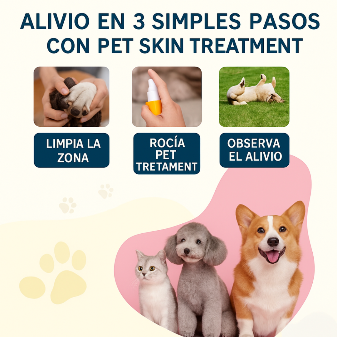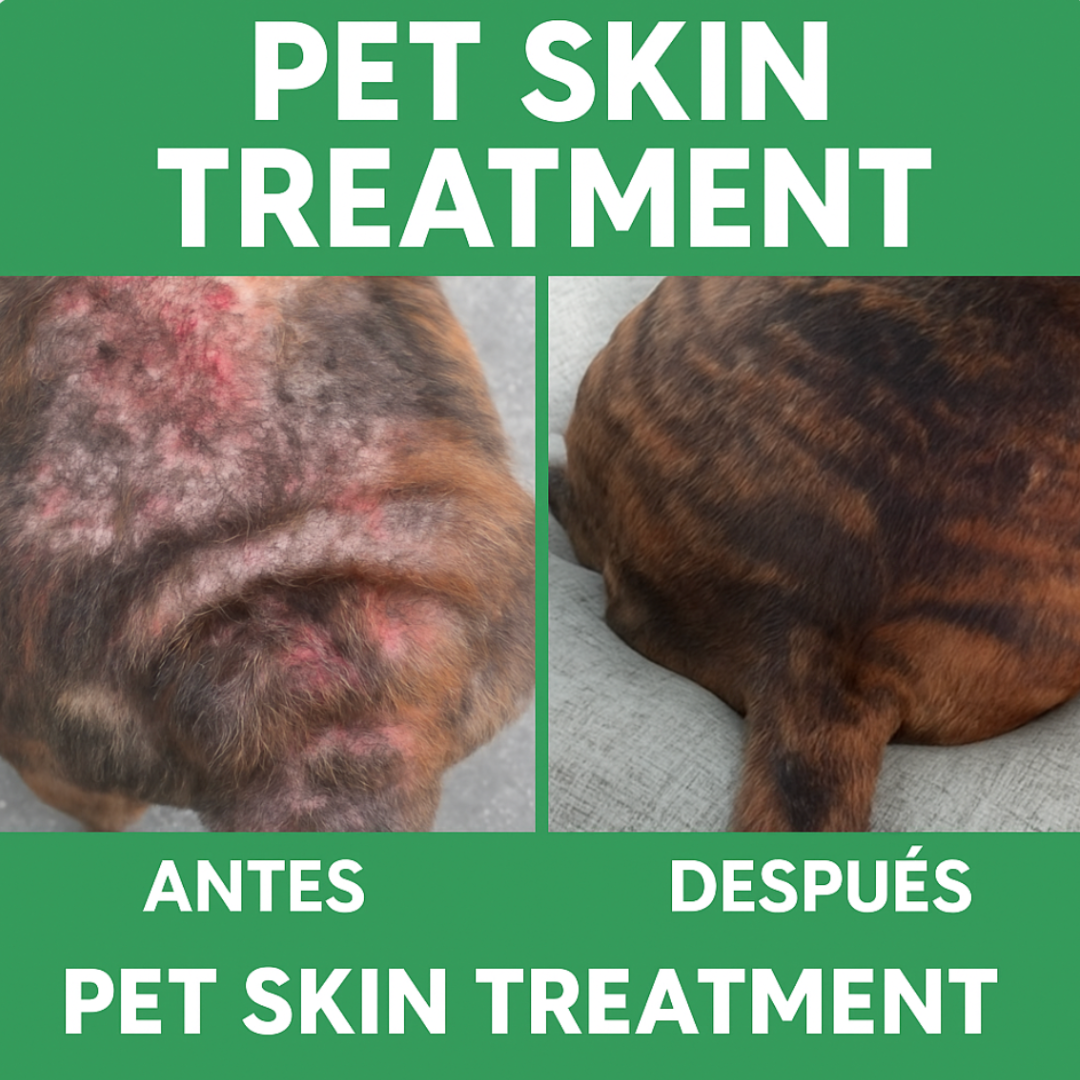No necesariamente. PET SKIN TREATMENT alivia síntomas y apoya la salud de la piel, pero si hay infección, heridas abiertas, pérdida intensa de pelo o empeoramiento, debes acudir al veterinario para diagnóstico y tratamiento específico.